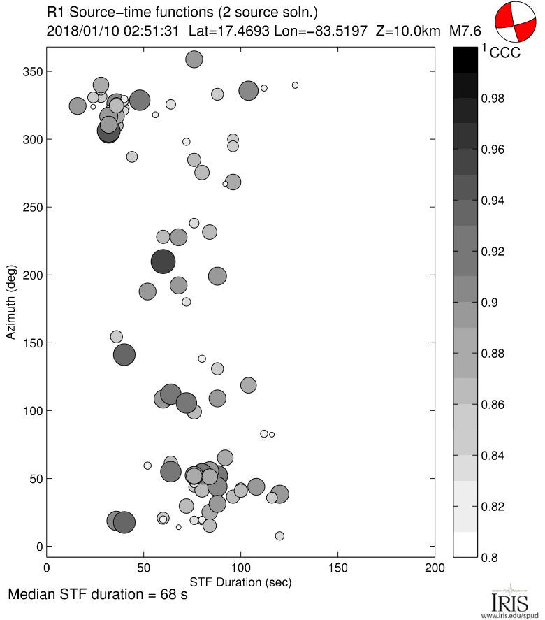Source Time Function for mww 7.6 NORTH OF HONDURAS |
