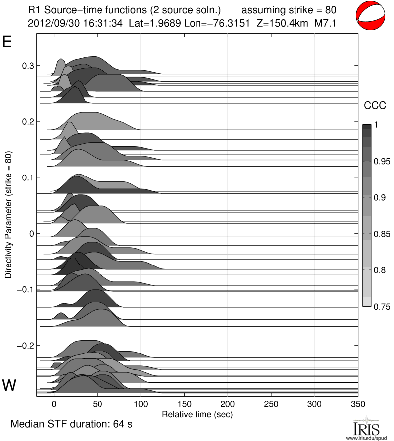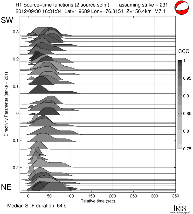 If you use Source Time Functions in publications, please cite according to the instructions at:http://ds.iris.edu/ds/products/sourcetimefunction/#citation Acknowledgements:Charles Ammon generously provided the time-domain iterative deconvolution portion of the code used. Luis Rivera generously provided the normal mode synthetic seismogram codes used. Results can be very sensitive to pre-processing, which neither C.A. nor L.R. contributed to. |