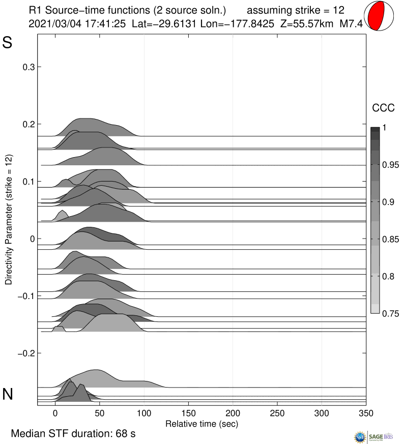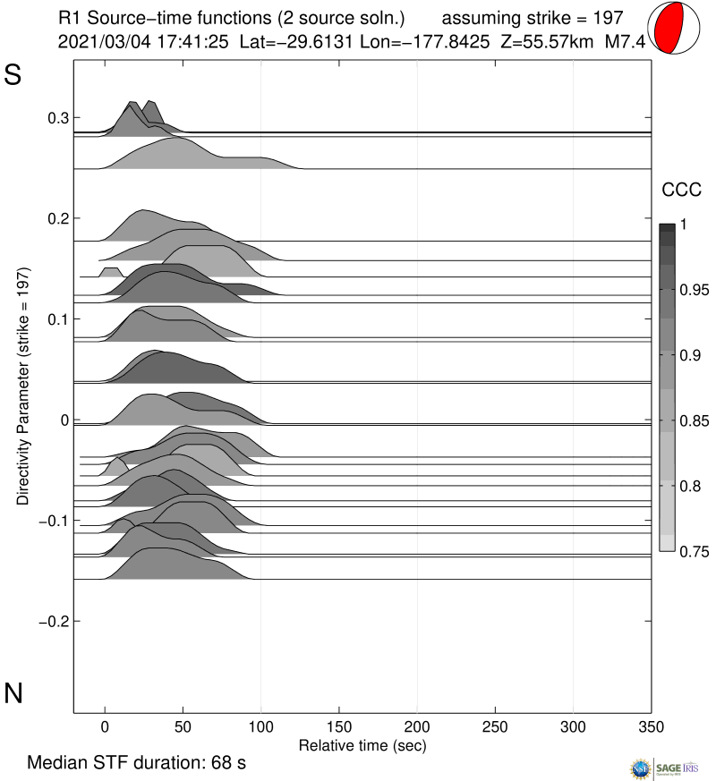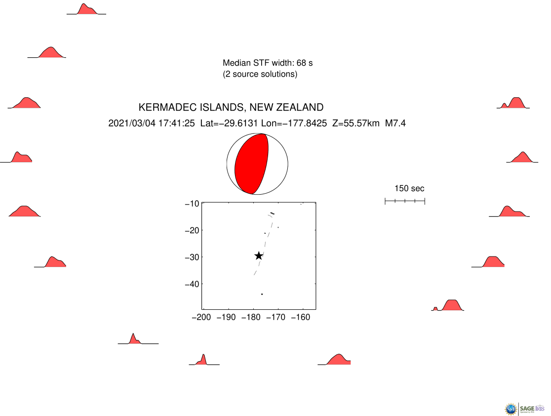 Source Time Function for mww 7.4 KERMADEC ISLANDS, NEW ZEALAND |