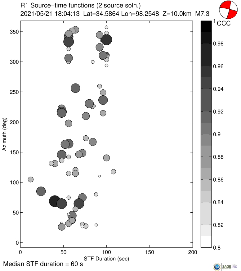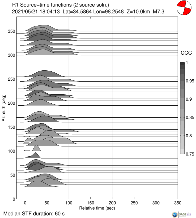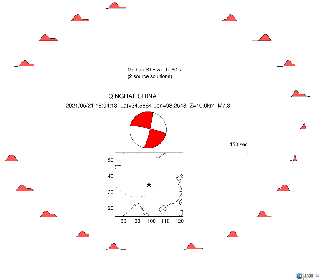 Source Time Function for Mww 7.3 QINGHAI, CHINA |