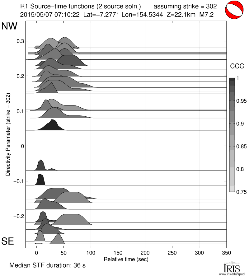 If you use Source Time Functions in publications, please cite according to the instructions at:http://ds.iris.edu/ds/products/sourcetimefunction/#citation Acknowledgements:Charles Ammon generously provided the time-domain iterative deconvolution portion of the code used. Luis Rivera generously provided the normal mode synthetic seismogram codes used. Results can be very sensitive to pre-processing, which neither C.A. nor L.R. contributed to. |