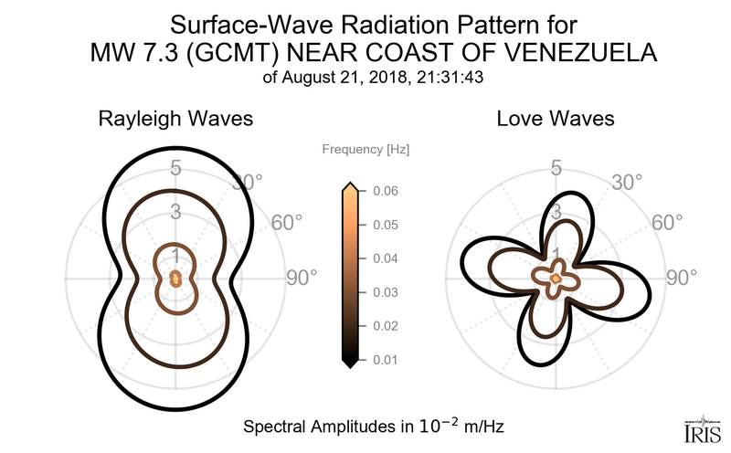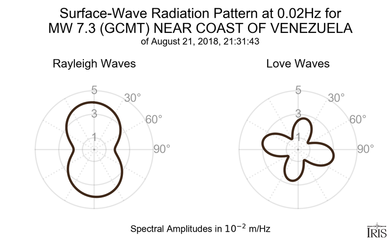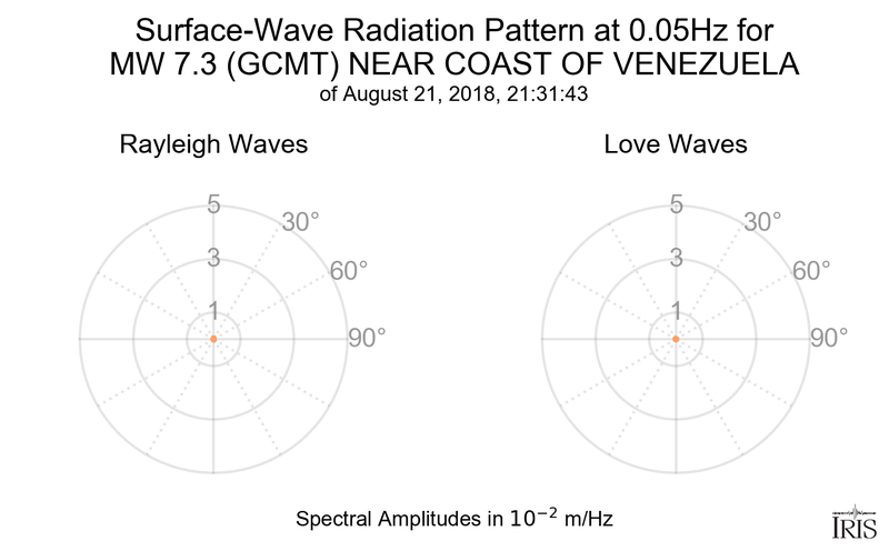 Surface-Wave Radiation Patterns for MW 7.3 NEAR COAST OF VENEZUELA |