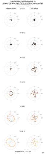 Surface-Wave Radiation Patterns for MW 6.6 NEAR EAST COAST OF KAMCHATKA |