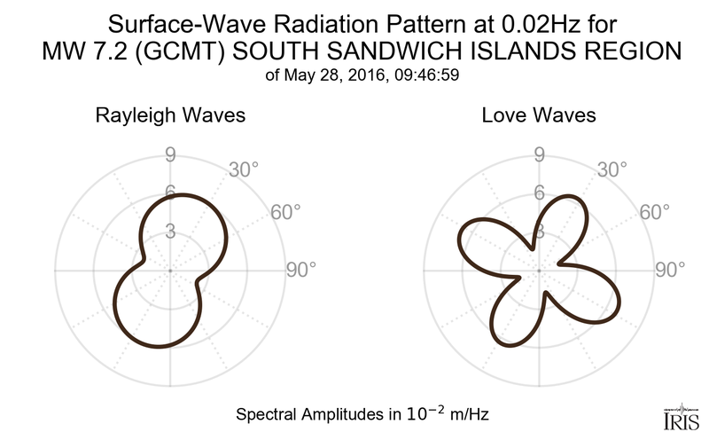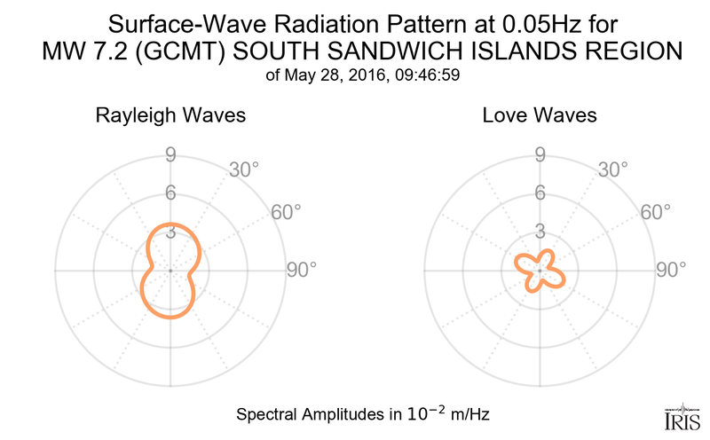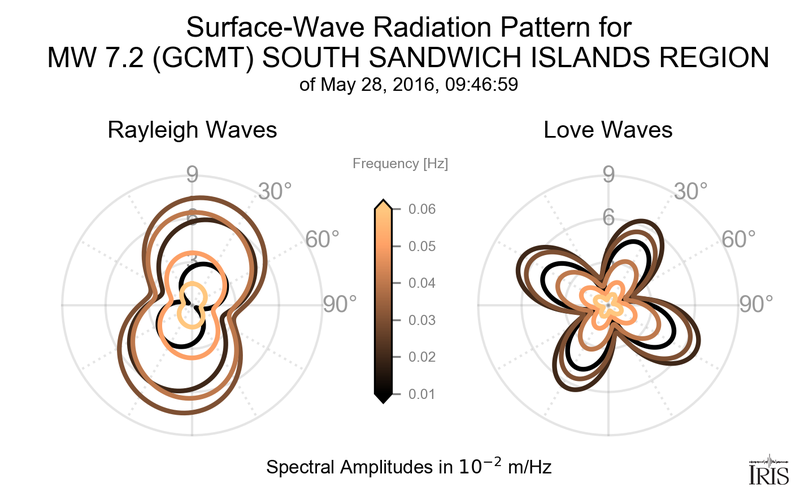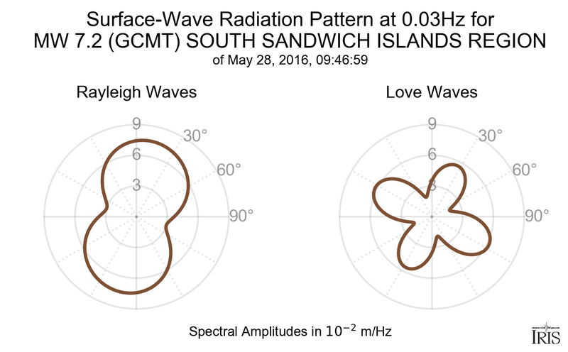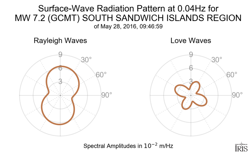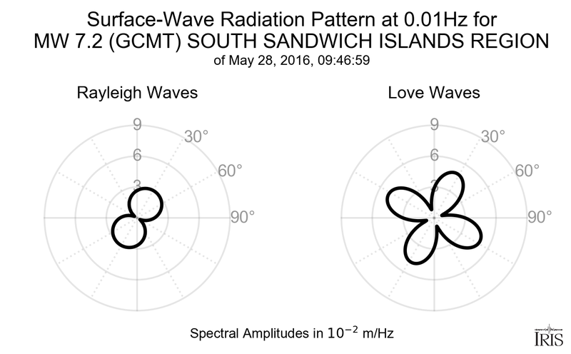Surface-Wave Radiation Patterns for MW 7.2 SOUTH SANDWICH ISLANDS REGION |