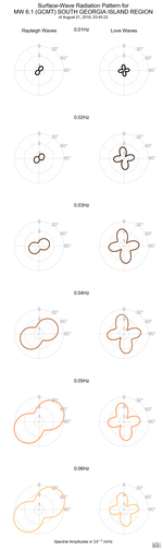 Surface-Wave Radiation Patterns for MW 6.1 SOUTH GEORGIA ISLAND REGION |