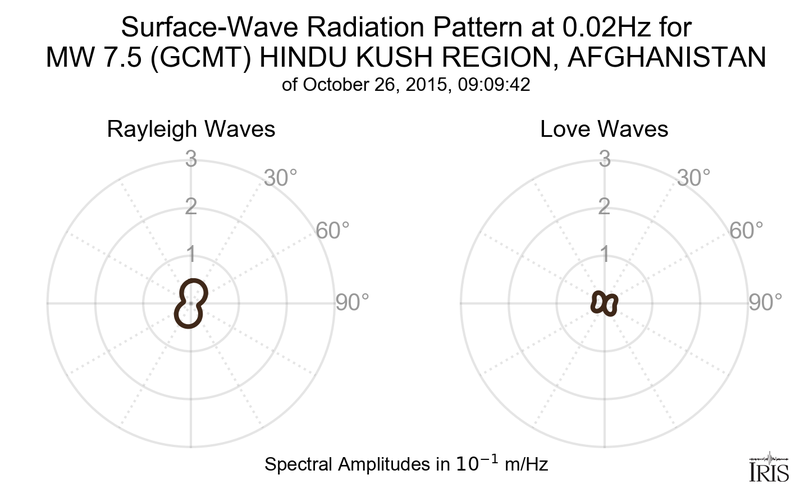 Surface-Wave Radiation Patterns for MW 7.5 HINDU KUSH REGION, AFGHANISTAN |