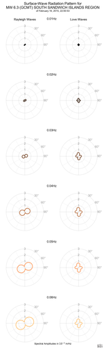 Surface-Wave Radiation Patterns for MW 6.3 SOUTH SANDWICH ISLANDS REGION |