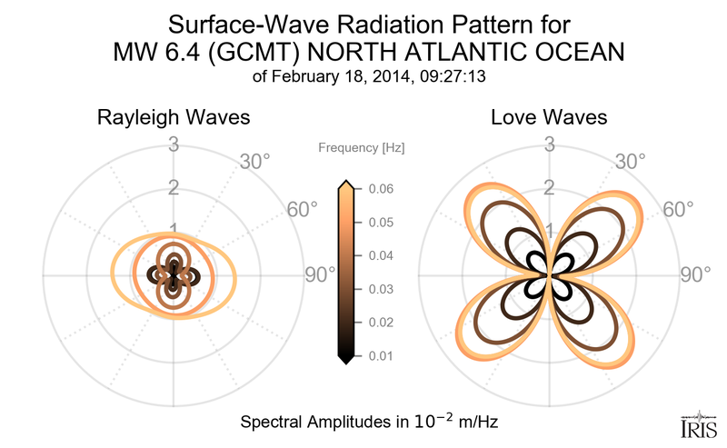 Surface-Wave Radiation Patterns for MW 6.4 NORTH ATLANTIC OCEAN |