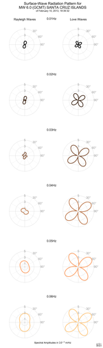 Surface-Wave Radiation Patterns for MW 6.0 SANTA CRUZ ISLANDS |
