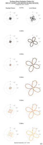 Surface-Wave Radiation Patterns for MW 6.7 JAN MAYEN ISLAND REGION |