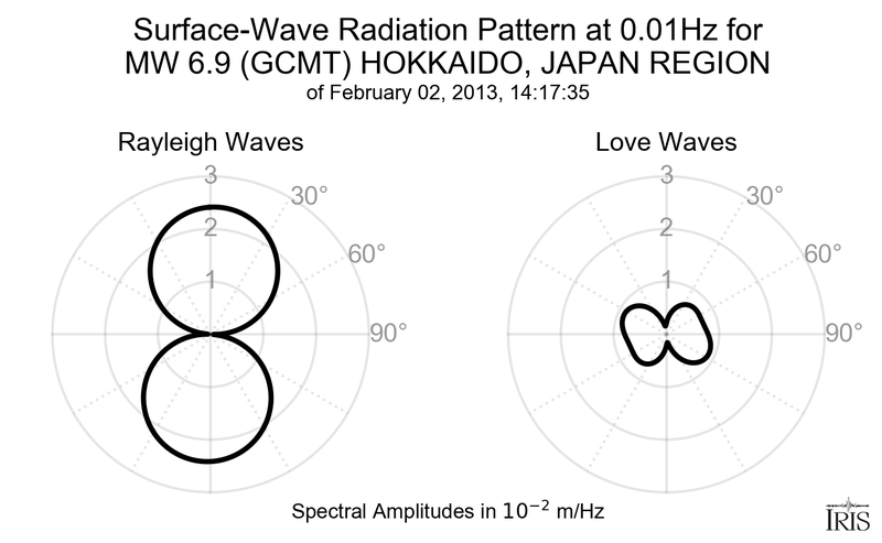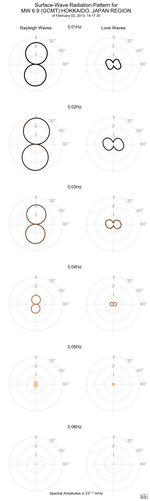 Surface-Wave Radiation Patterns for MW 6.9 HOKKAIDO, JAPAN REGION |