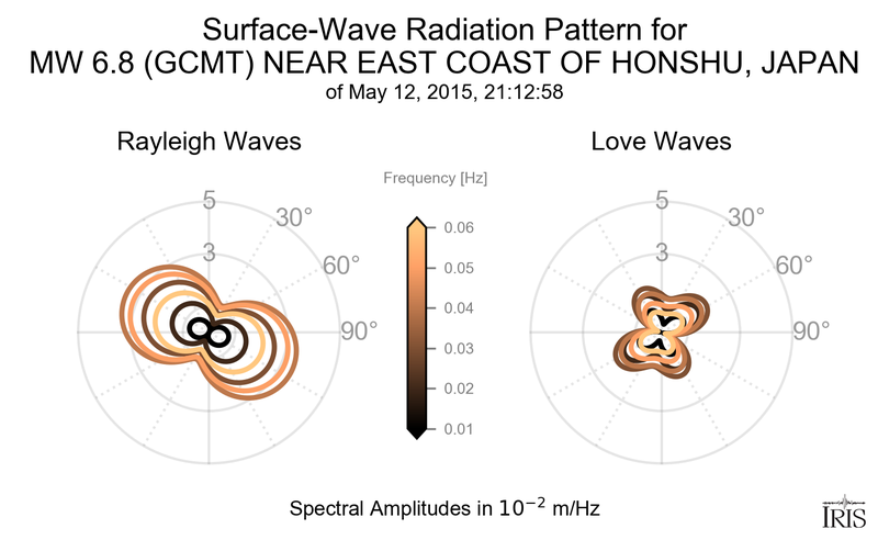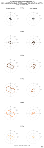 Surface-Wave Radiation Patterns for MW 6.8 NEAR EAST COAST OF HONSHU, JAPAN |