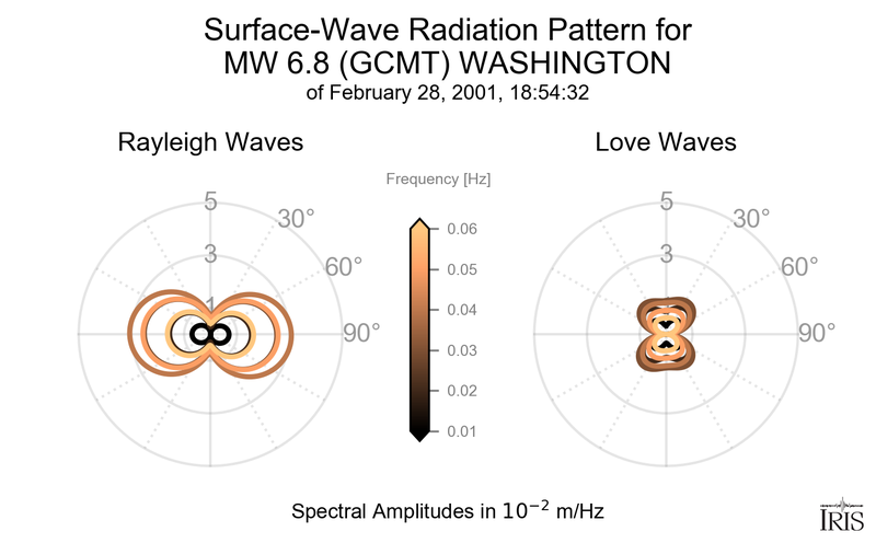 Surface-Wave Radiation Patterns for MW 6.8 WASHINGTON |