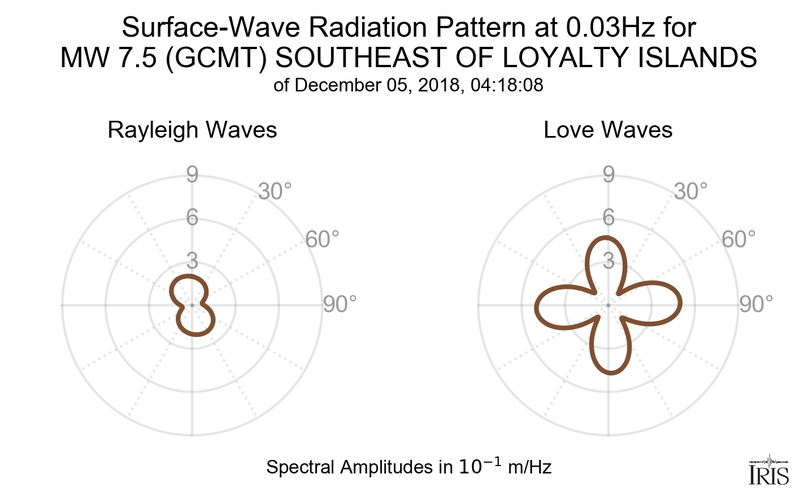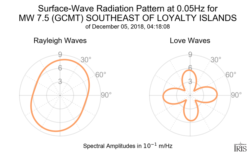 Surface-Wave Radiation Patterns for MW 7.5 SOUTHEAST OF LOYALTY ISLANDS |