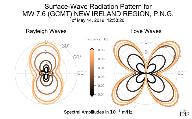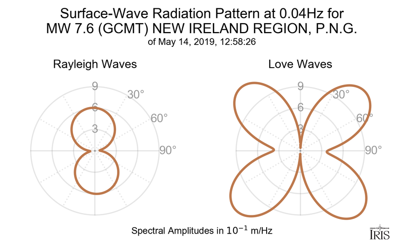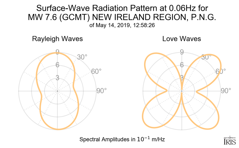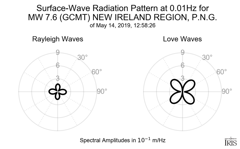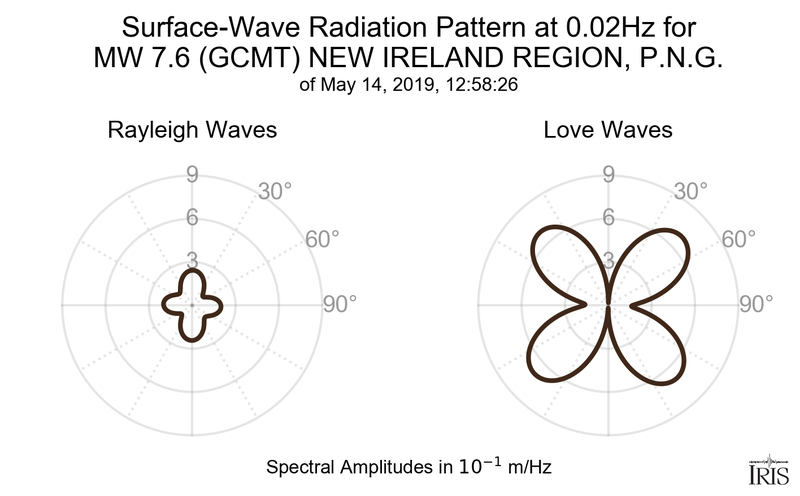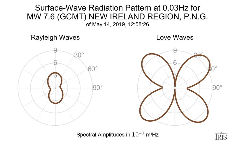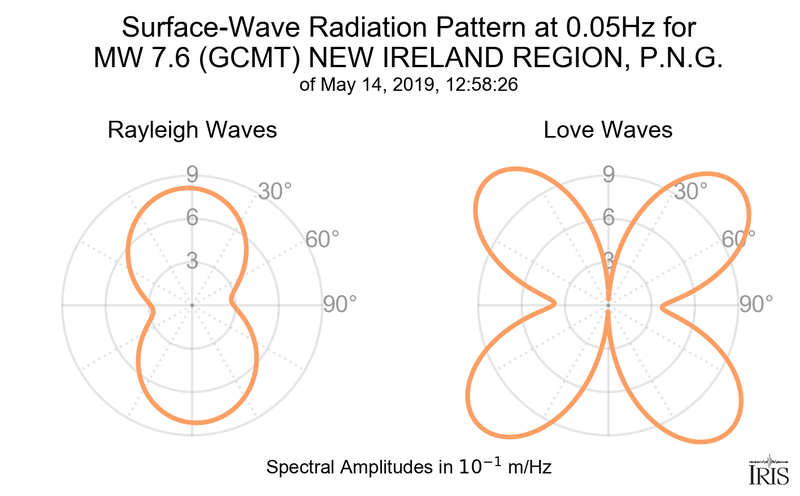 Surface-Wave Radiation Patterns for MW 7.6 NEW IRELAND REGION, P.N.G. |