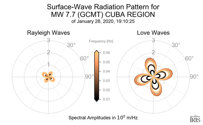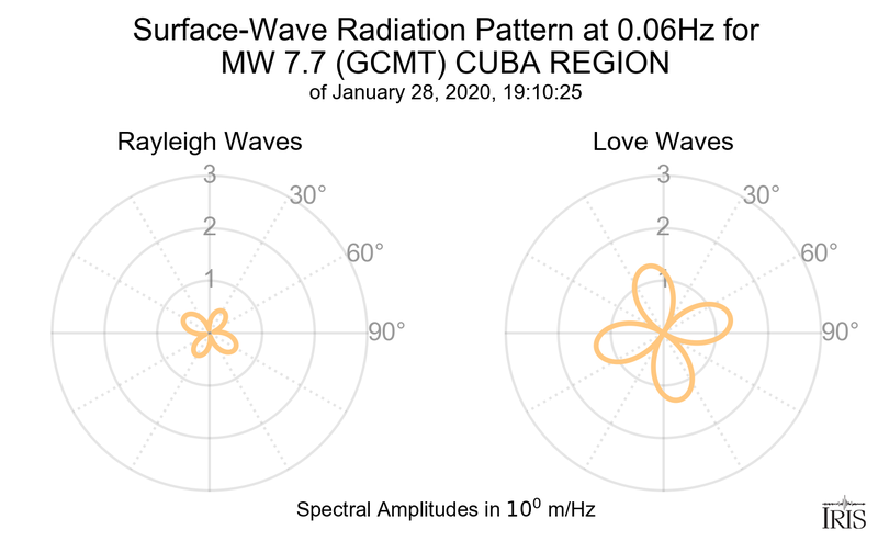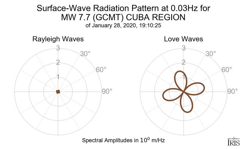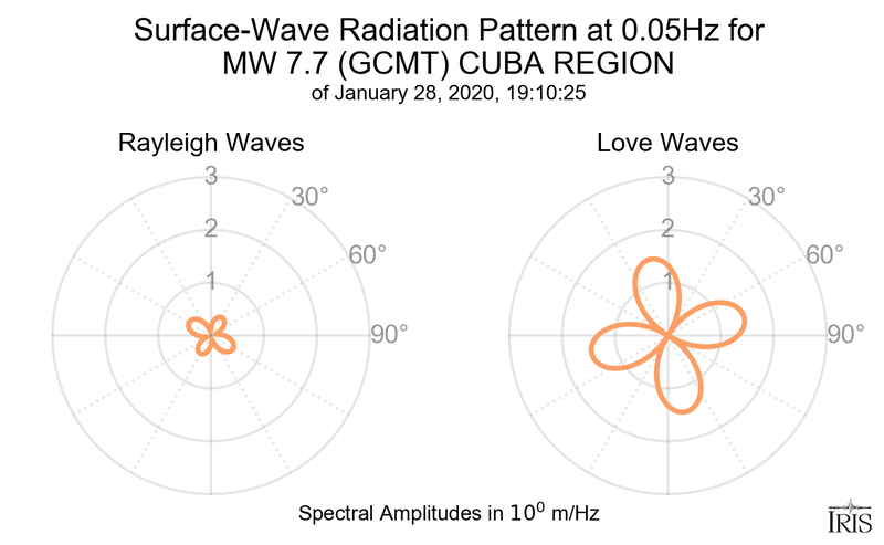 Surface-Wave Radiation Patterns for MW 7.7 CUBA REGION |