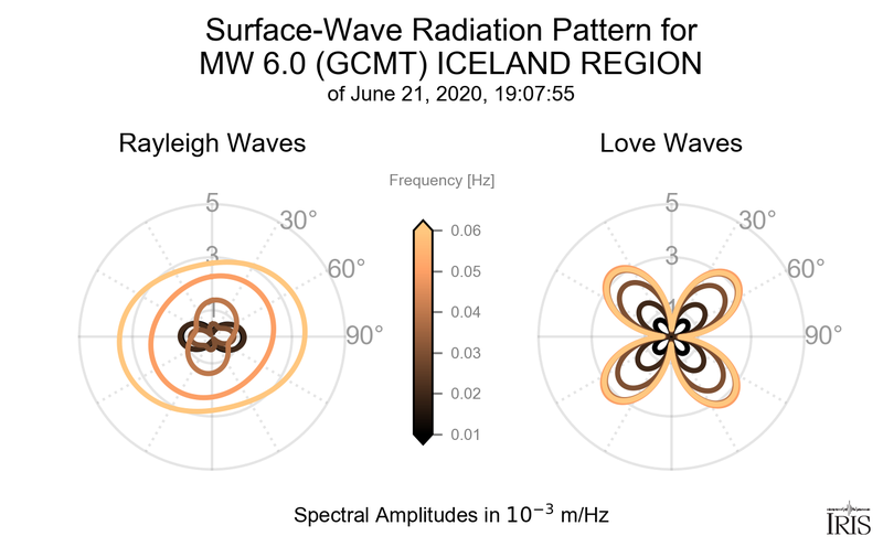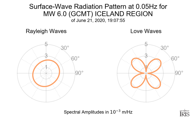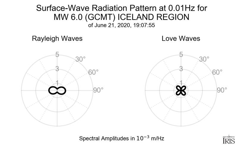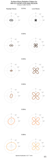 Surface-Wave Radiation Patterns for MW 6.0 ICELAND REGION |