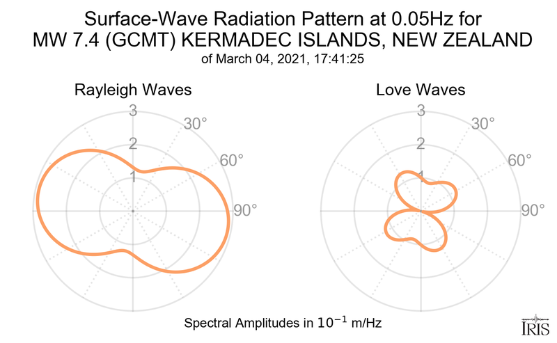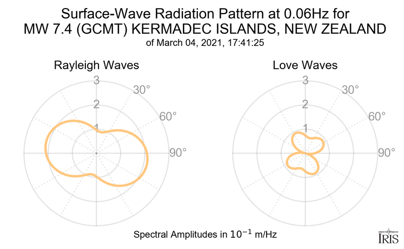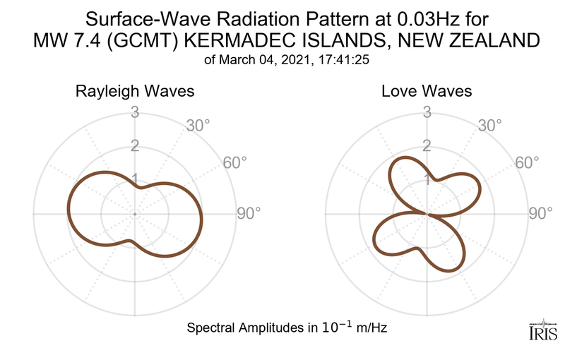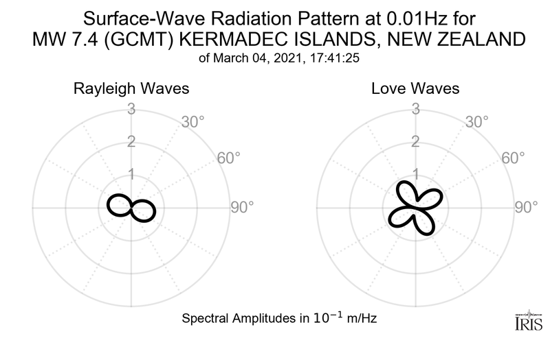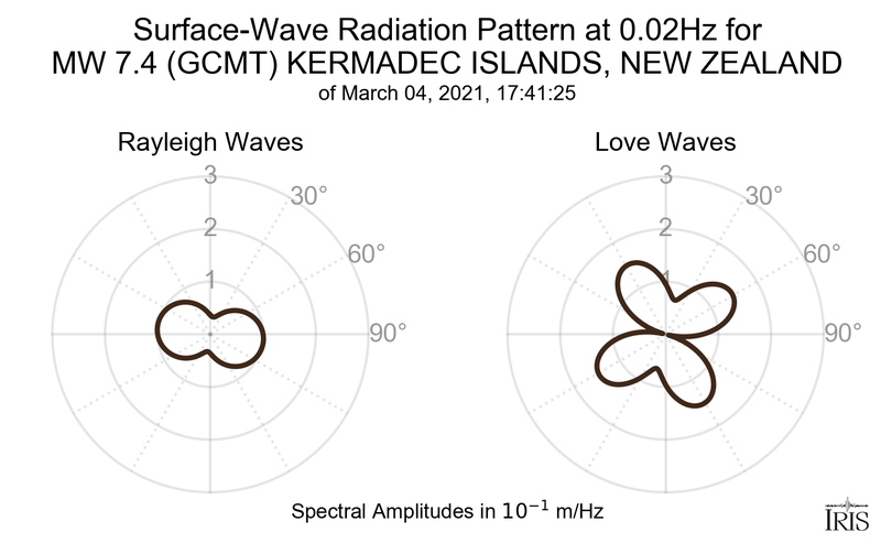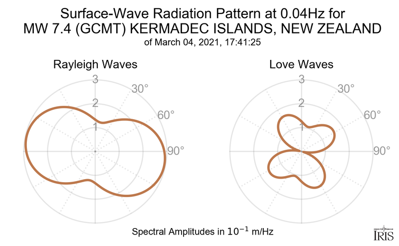 Surface-Wave Radiation Patterns for MW 7.4 KERMADEC ISLANDS, NEW ZEALAND |