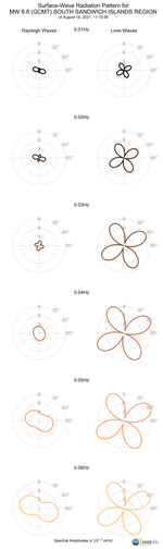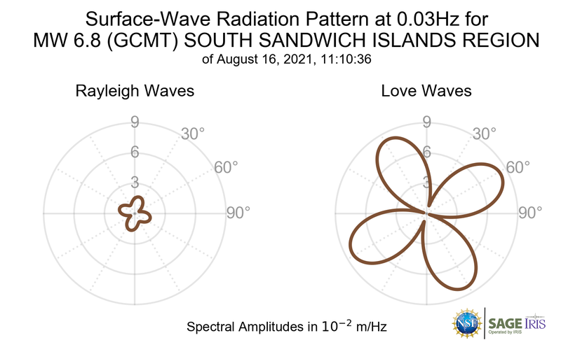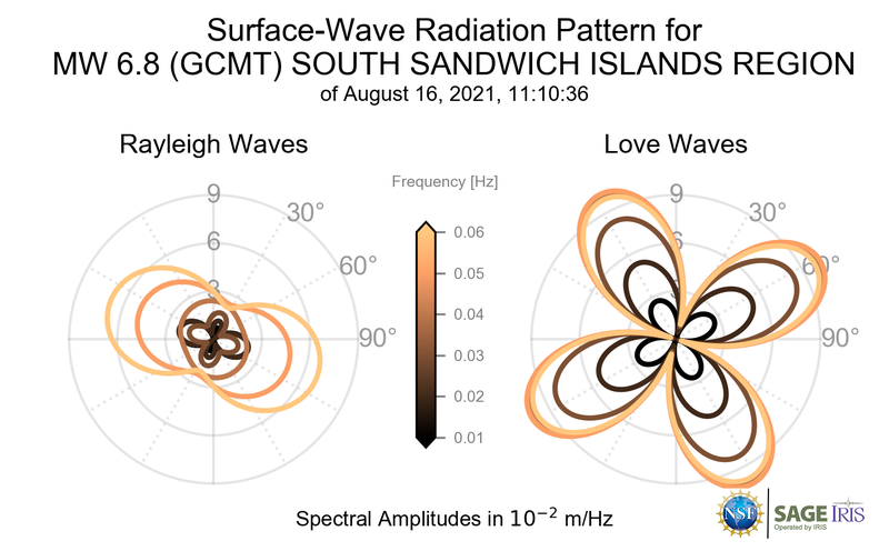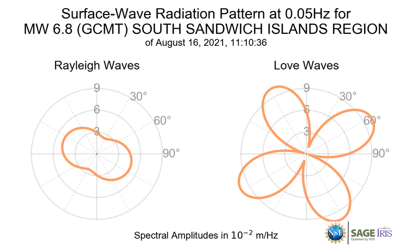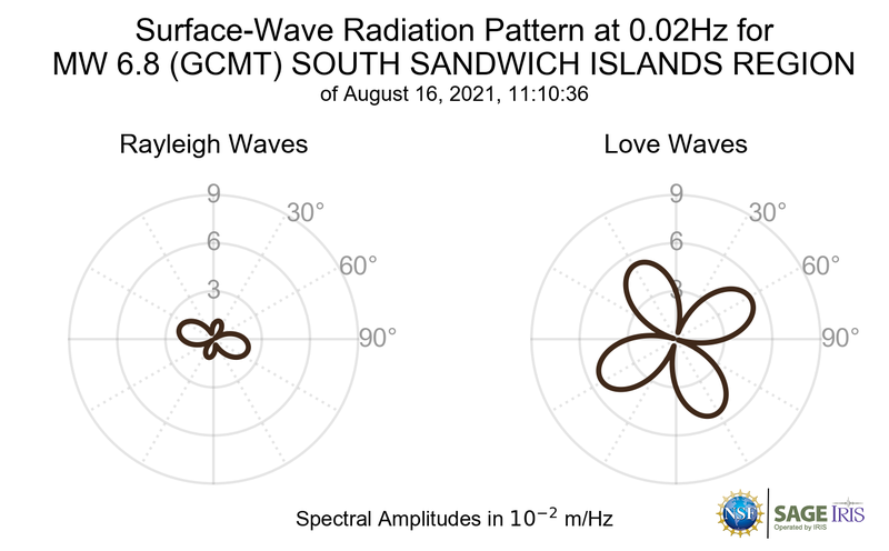 Surface-Wave Radiation Patterns for MW 6.8 SOUTH SANDWICH ISLANDS REGION |