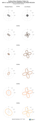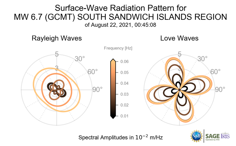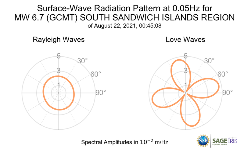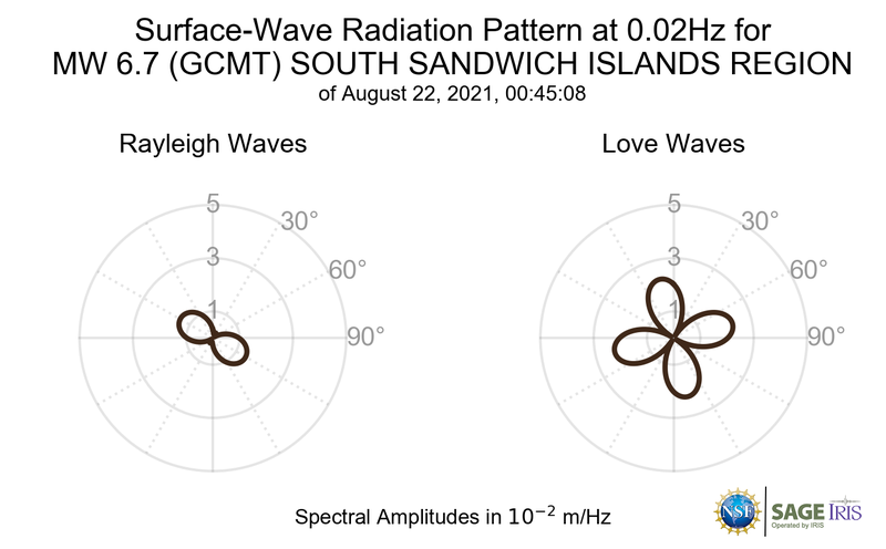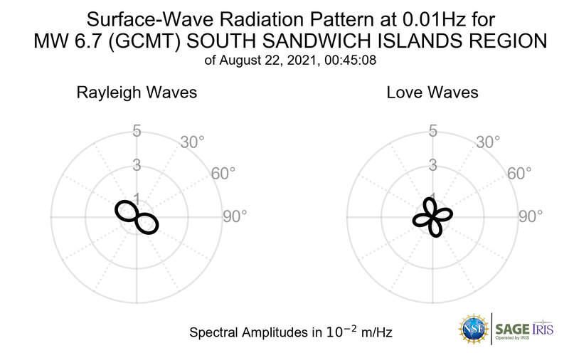 Surface-Wave Radiation Patterns for MW 6.7 SOUTH SANDWICH ISLANDS REGION |