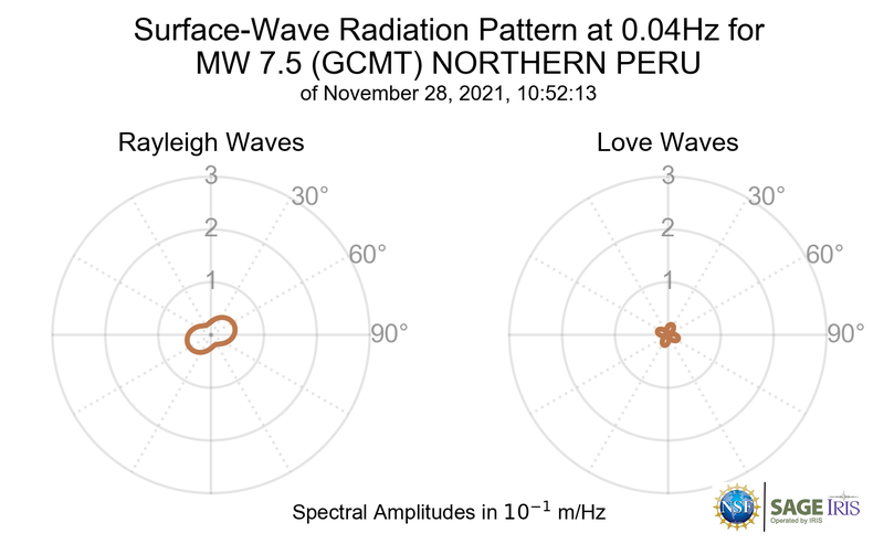 Surface-Wave Radiation Patterns for MW 7.5 NORTHERN PERU |