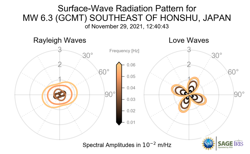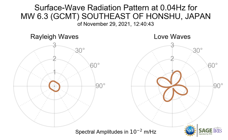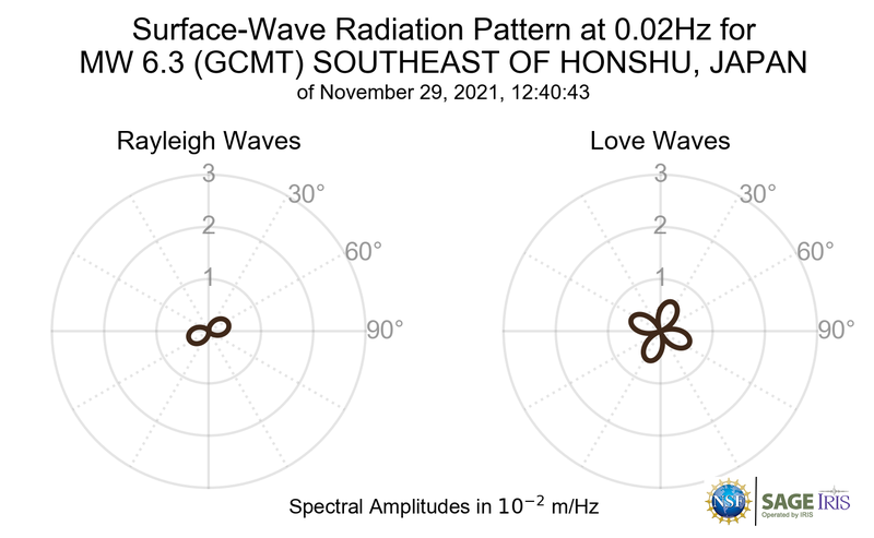 Surface-Wave Radiation Patterns for MW 6.3 SOUTHEAST OF HONSHU, JAPAN |