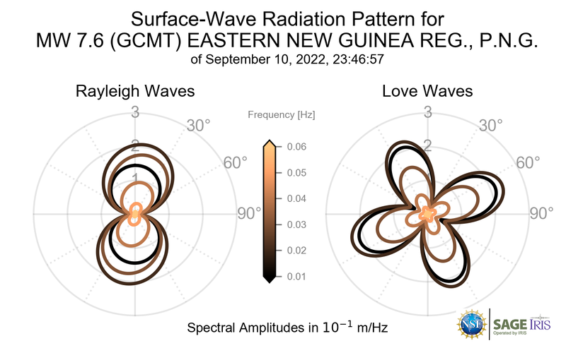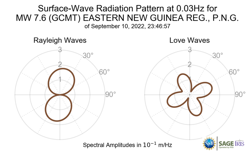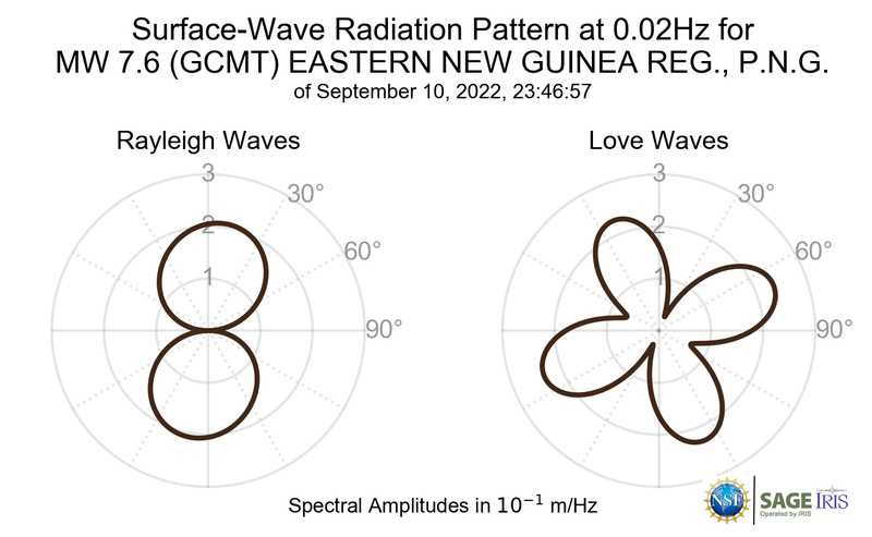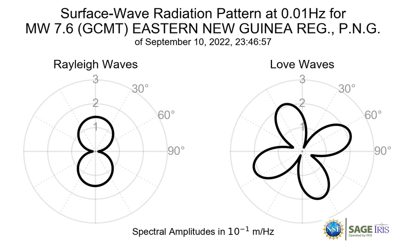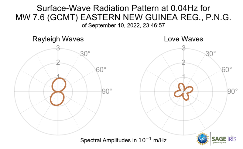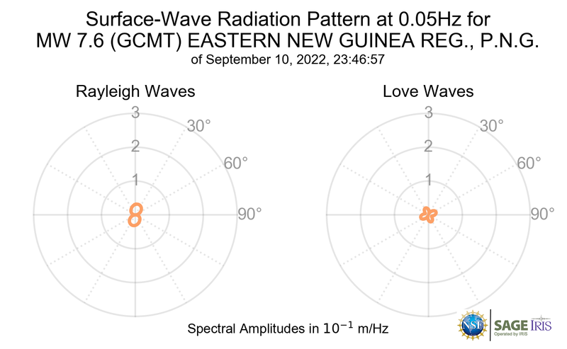 Surface-Wave Radiation Patterns for MW 7.6 EASTERN NEW GUINEA REG., P.N.G. |
