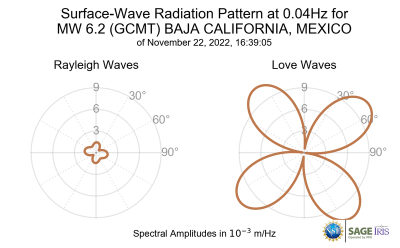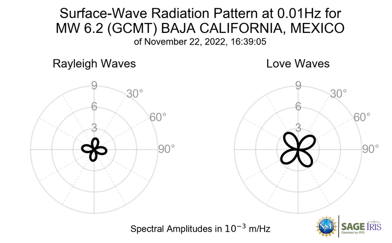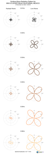 Surface-Wave Radiation Patterns for MW 6.2 BAJA CALIFORNIA, MEXICO |