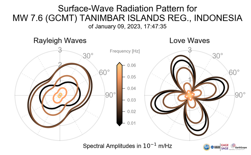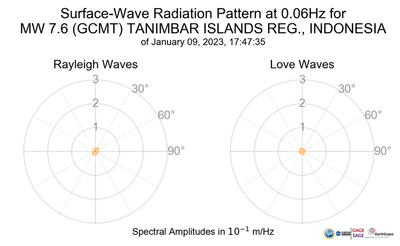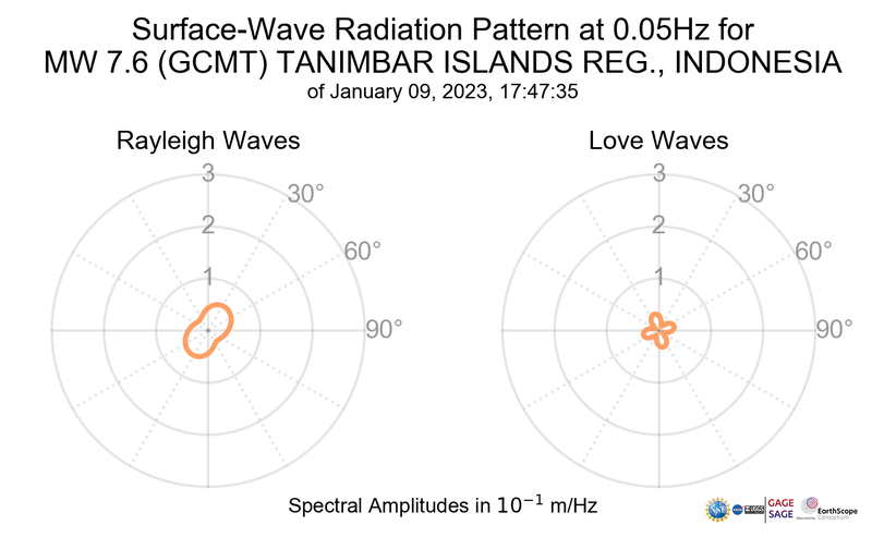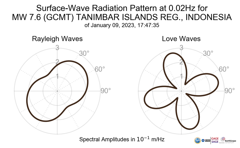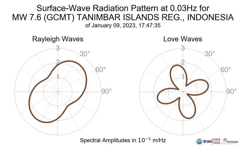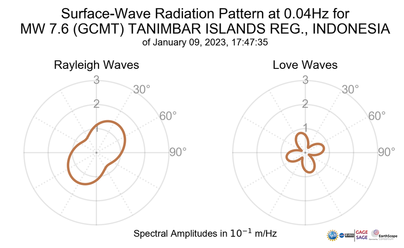 Surface-Wave Radiation Patterns for MW 7.6 TANIMBAR ISLANDS REG., INDONESIA |