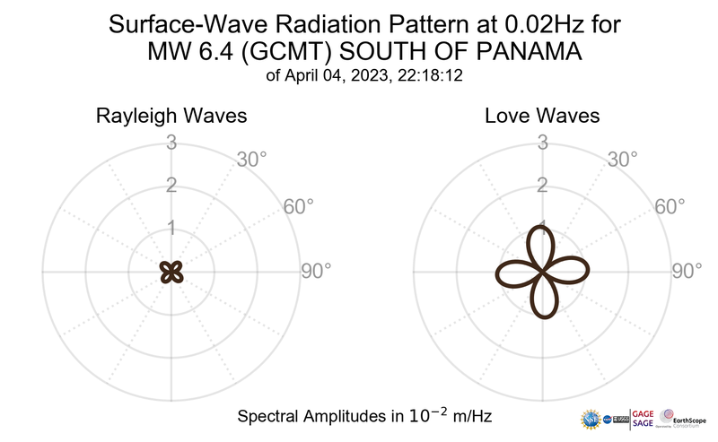 Surface-Wave Radiation Patterns for MW 6.4 SOUTH OF PANAMA |
