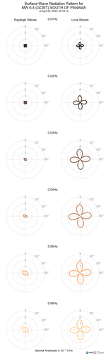 This page shows the surface-wave radiation patterns for the selected event.