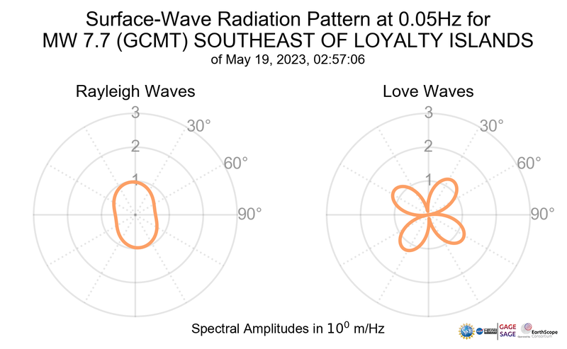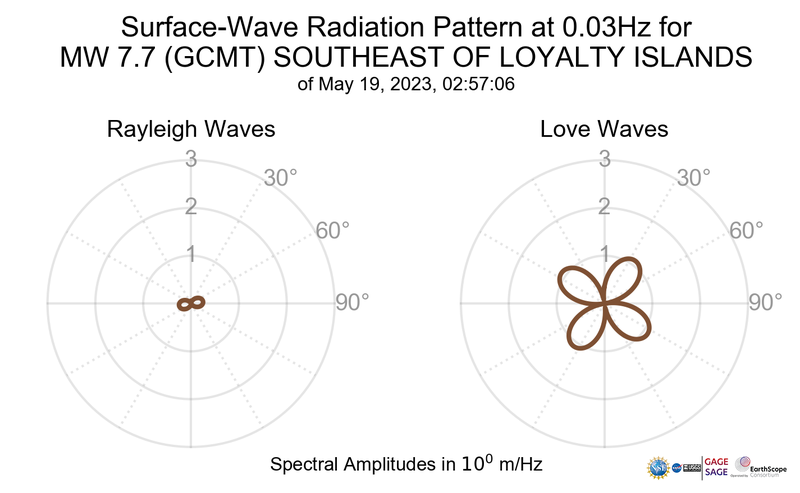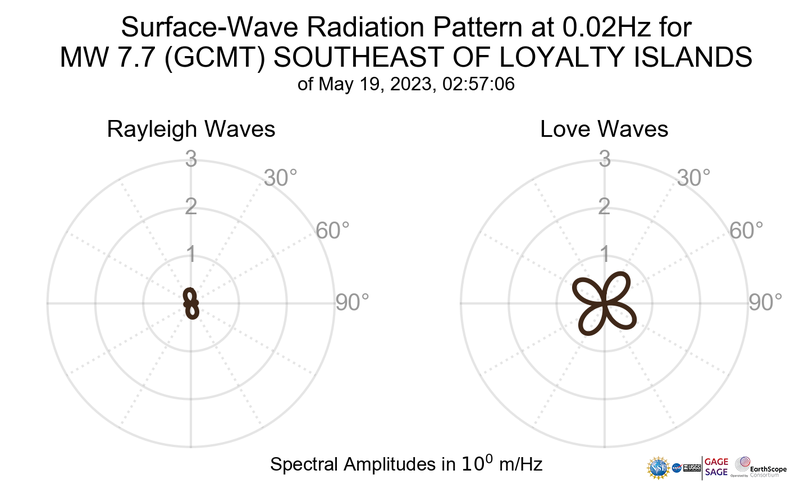 Surface-Wave Radiation Patterns for MW 7.7 SOUTHEAST OF LOYALTY ISLANDS |
