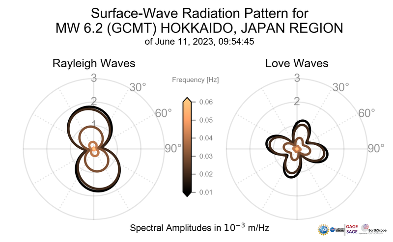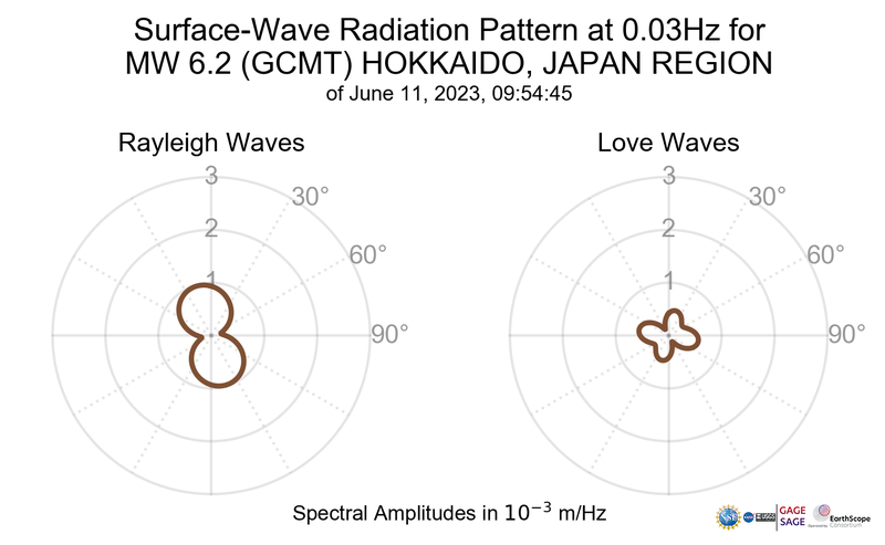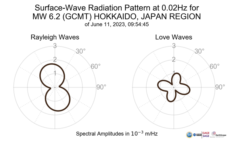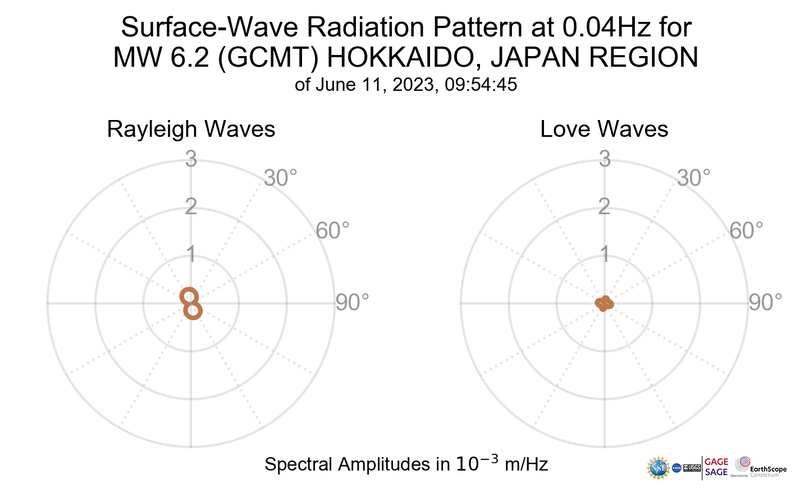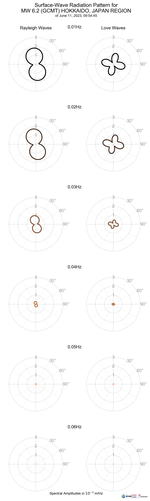Surface-Wave Radiation Patterns for MW 6.2 HOKKAIDO, JAPAN REGION |