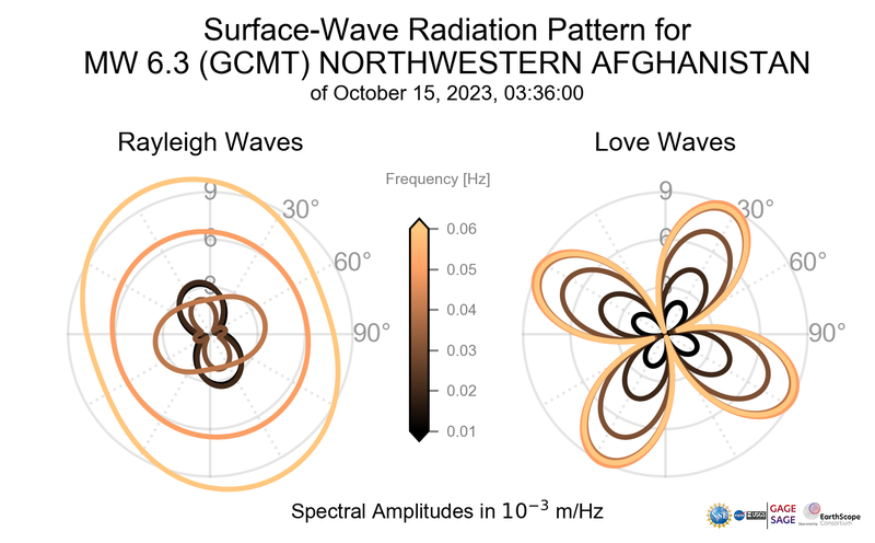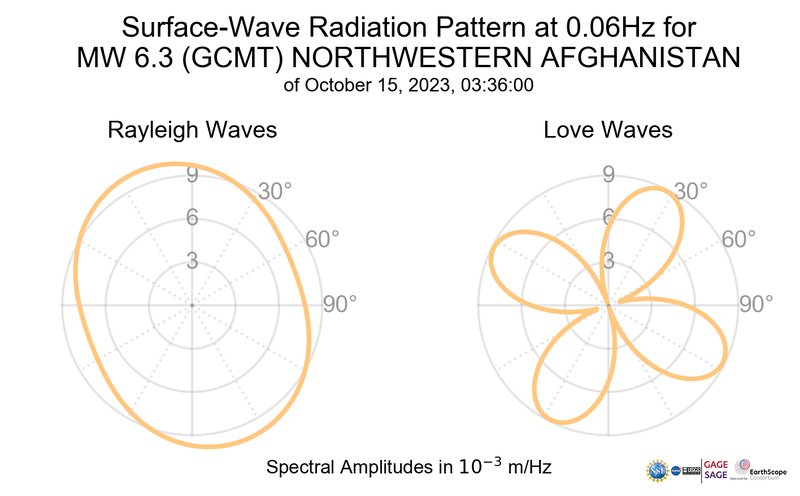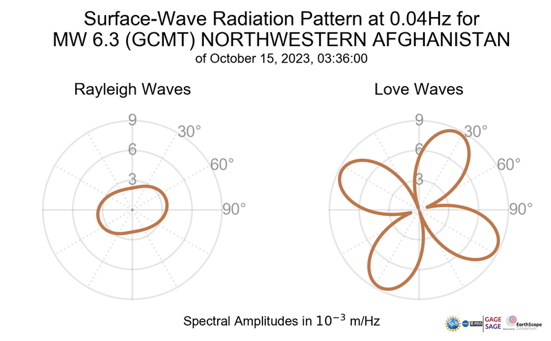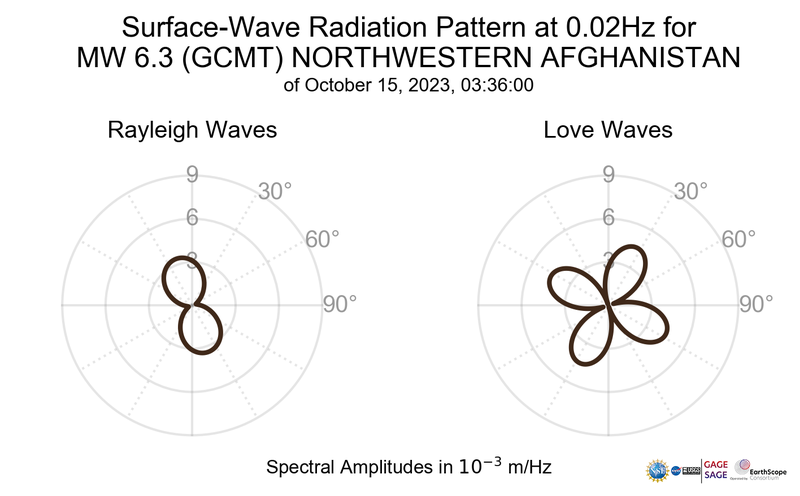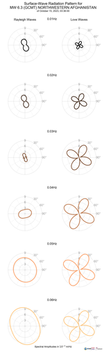 Surface-Wave Radiation Patterns for MW 6.3 NORTHWESTERN AFGHANISTAN |