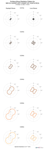 Surface-Wave Radiation Patterns for MW 6.2 OFF COAST OF COSTA RICA |