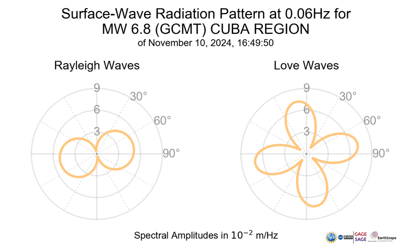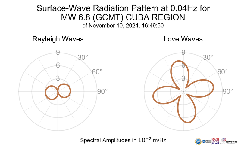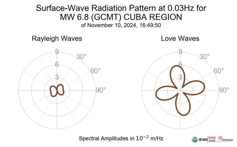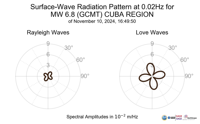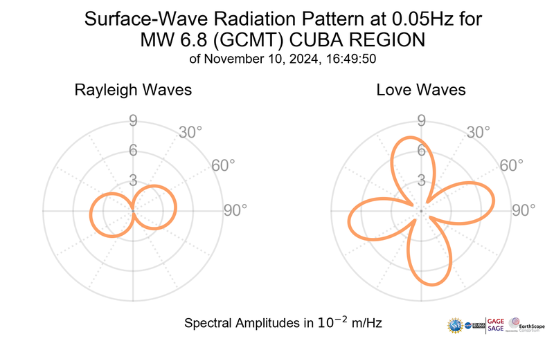 Surface-Wave Radiation Patterns for MW 6.8 CUBA REGION |