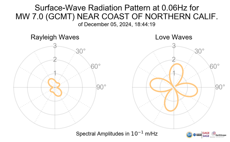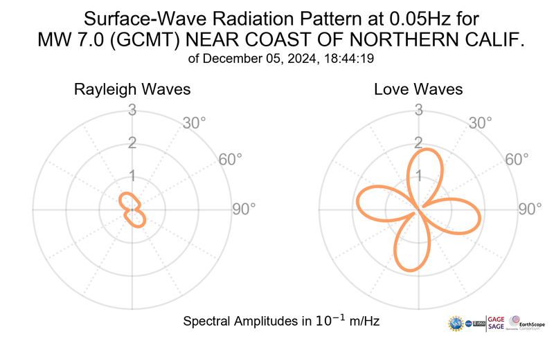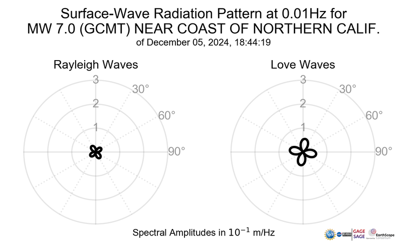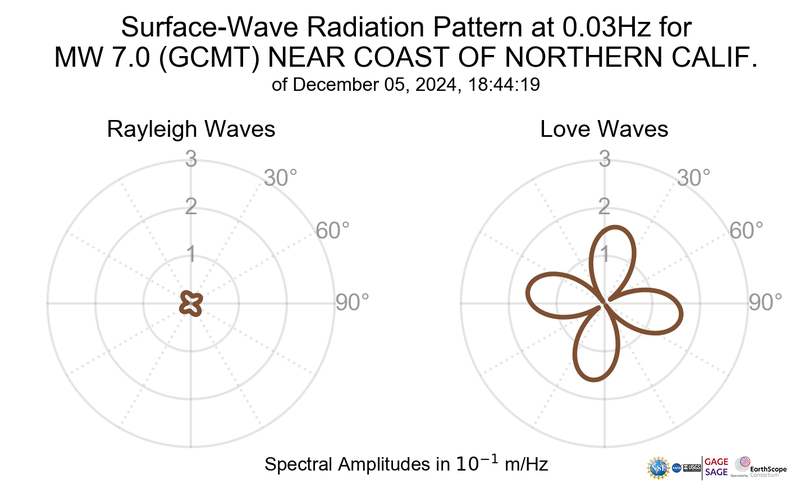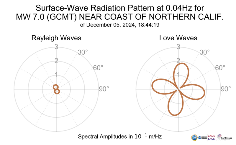 Surface-Wave Radiation Patterns for MW 7.0 NEAR COAST OF NORTHERN CALIF. |