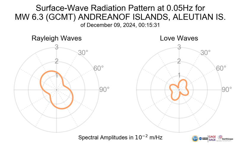 Surface-Wave Radiation Patterns for MW 6.3 ANDREANOF ISLANDS, ALEUTIAN IS. |