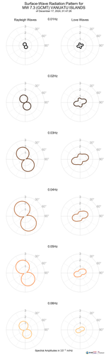Surface-Wave Radiation Patterns for MW 7.3 VANUATU ISLANDS |