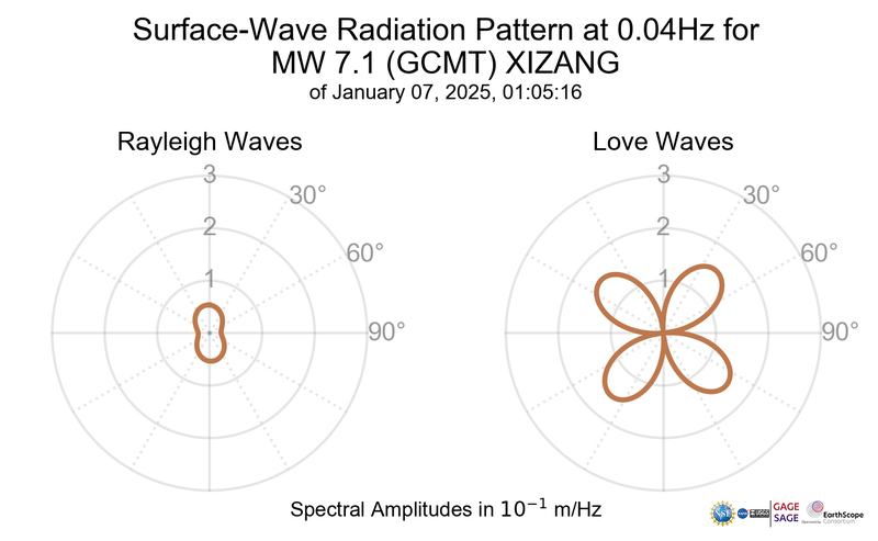 Surface-Wave Radiation Patterns for MW 7.1 XIZANG |