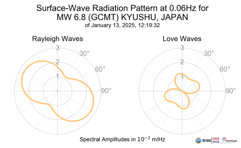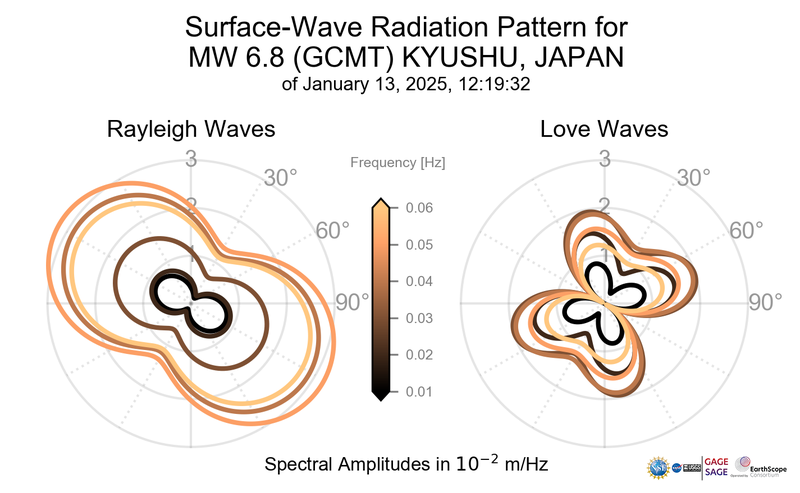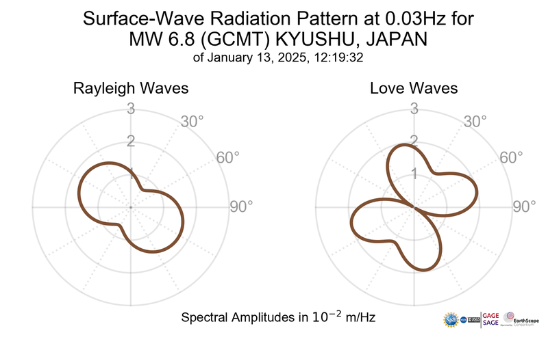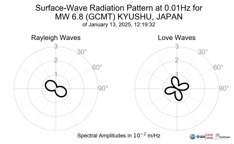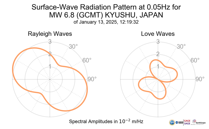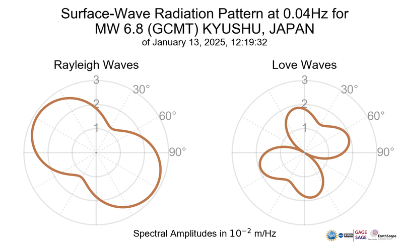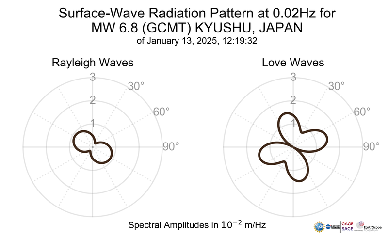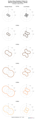 Surface-Wave Radiation Patterns for MW 6.8 KYUSHU, JAPAN |