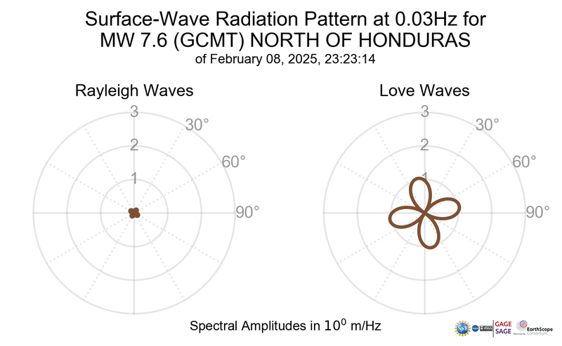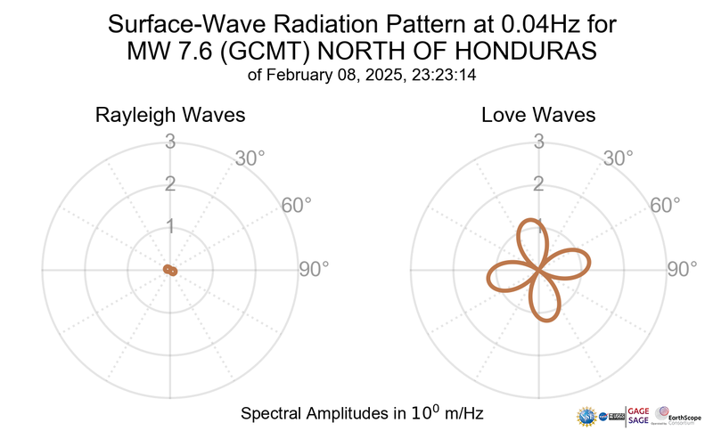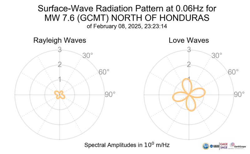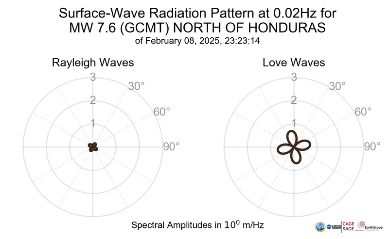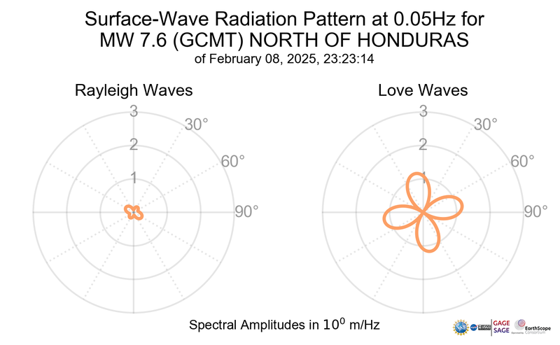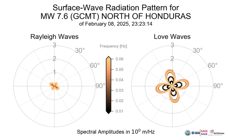 Surface-Wave Radiation Patterns for MW 7.6 NORTH OF HONDURAS |