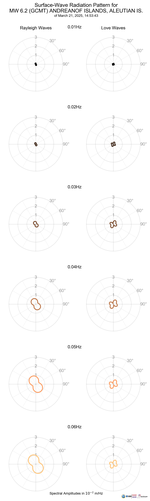 Surface-Wave Radiation Patterns for MW 6.2 ANDREANOF ISLANDS, ALEUTIAN IS. |