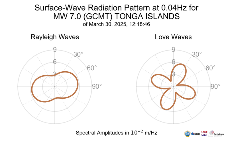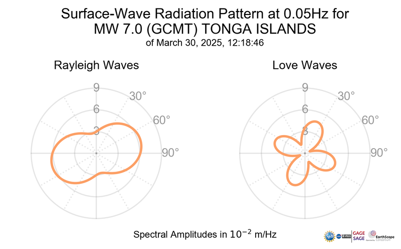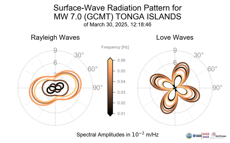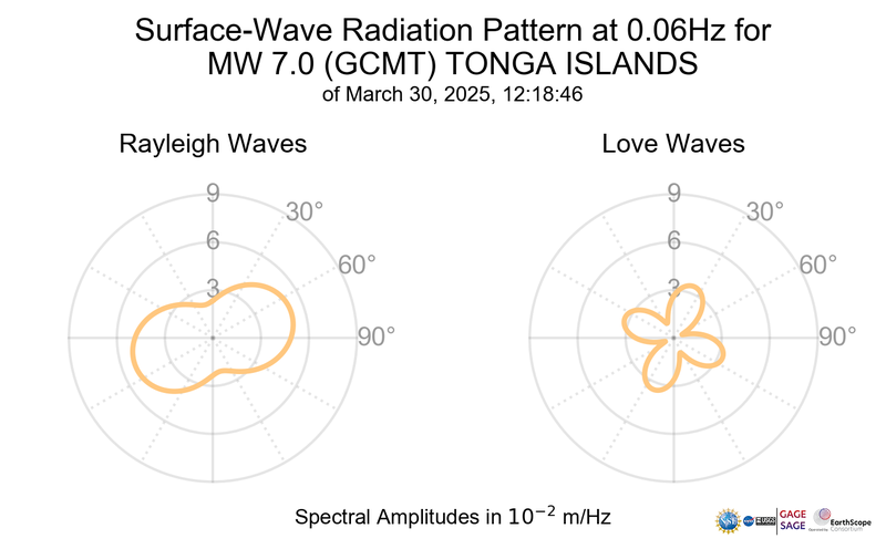 Surface-Wave Radiation Patterns for MW 7.0 TONGA ISLANDS |