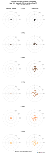 Surface-Wave Radiation Patterns for MW 6.9 REYKJANES RIDGE |