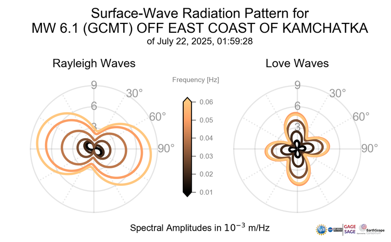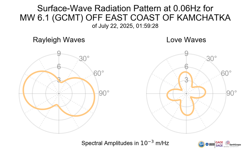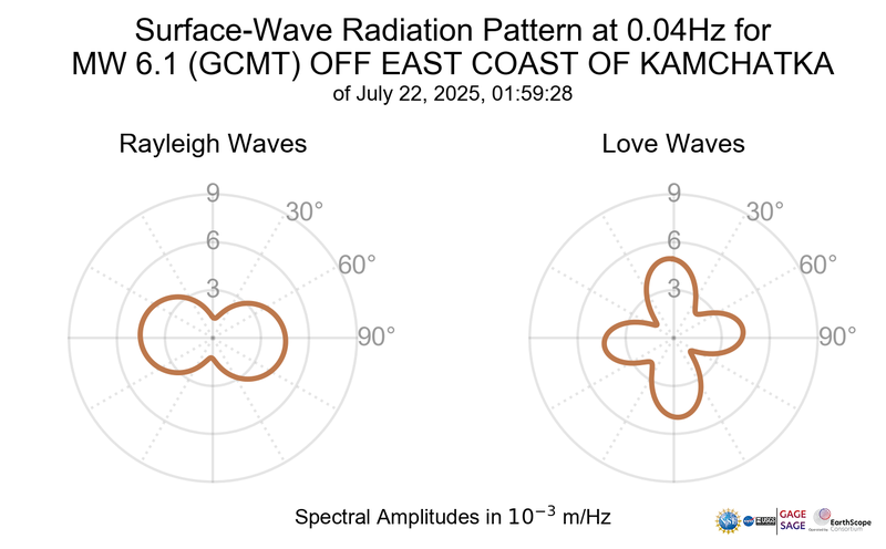 Surface-Wave Radiation Patterns for MW 6.1 OFF EAST COAST OF KAMCHATKA |