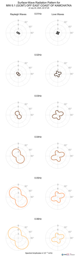 Surface-Wave Radiation Patterns for MW 6.1 OFF EAST COAST OF KAMCHATKA |