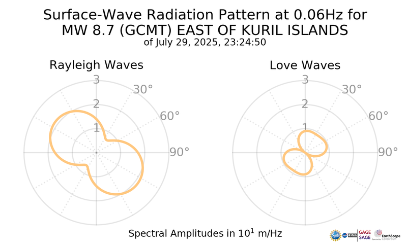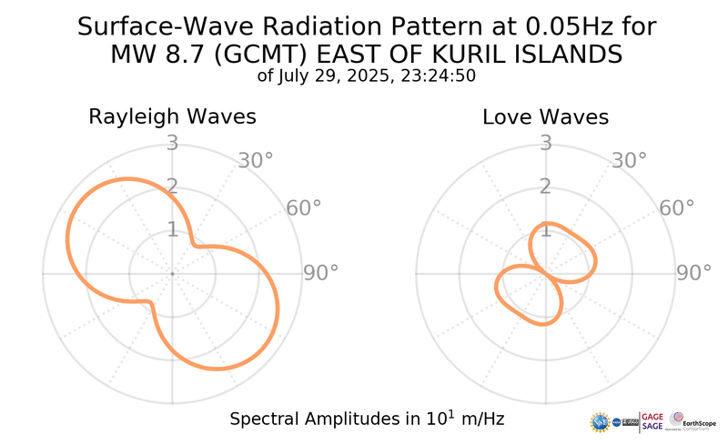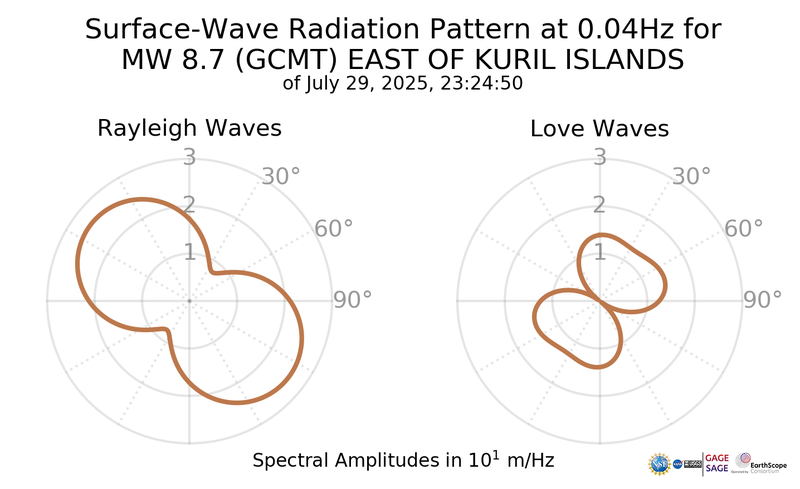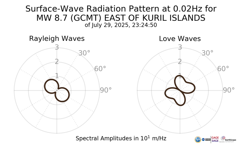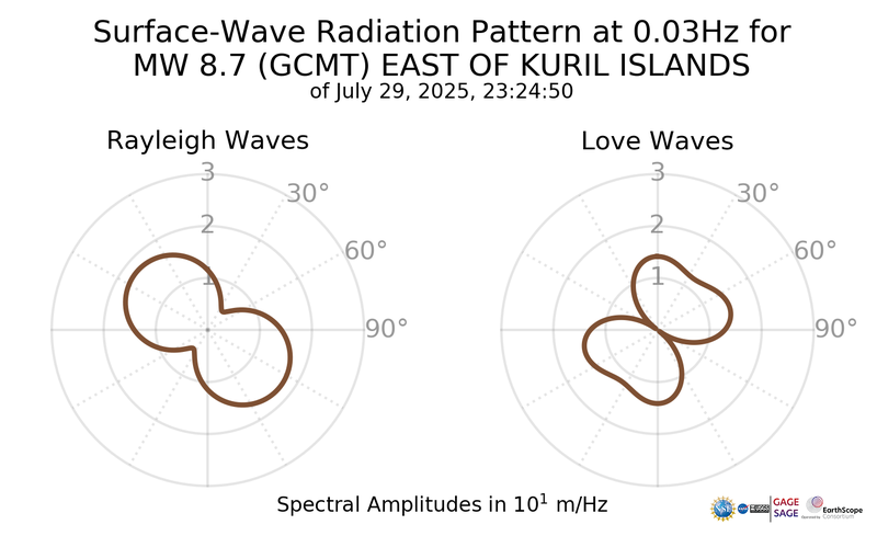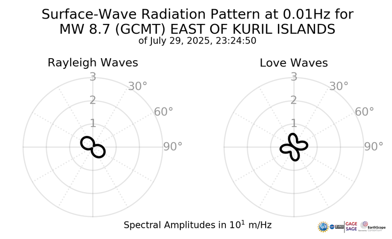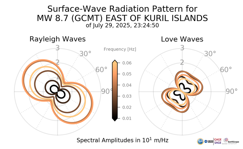 Surface-Wave Radiation Patterns for MW 8.7 EAST OF KURIL ISLANDS |