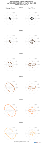 Surface-Wave Radiation Patterns for MW 6.8 EAST OF KURIL ISLANDS |