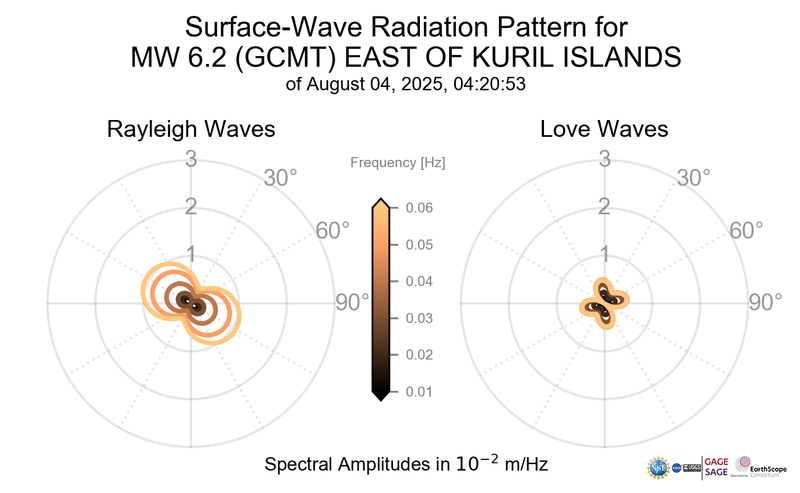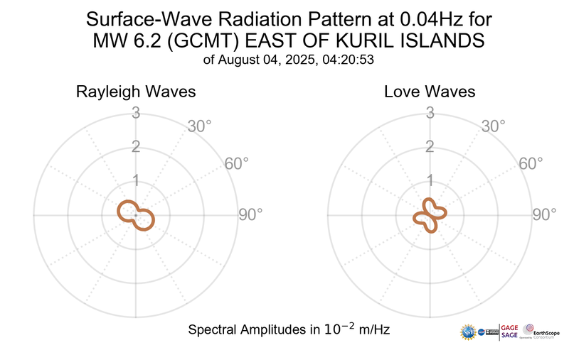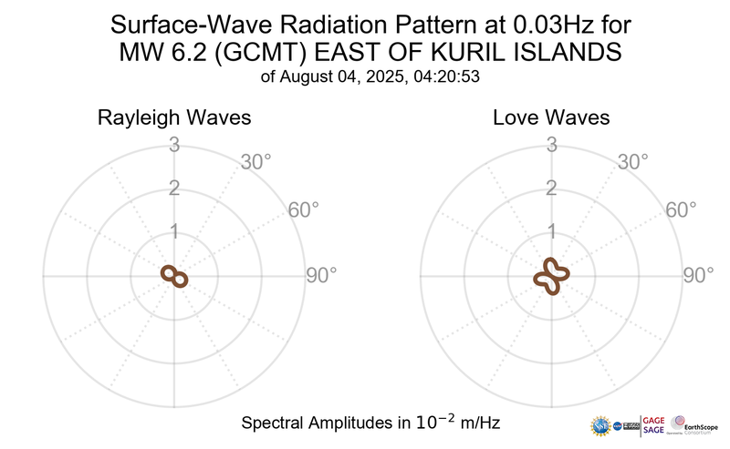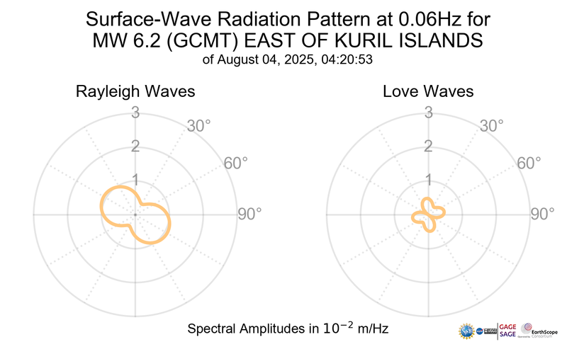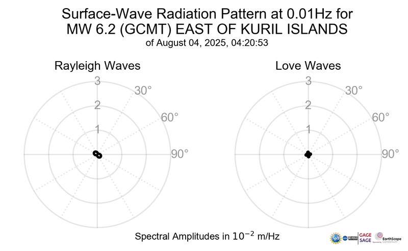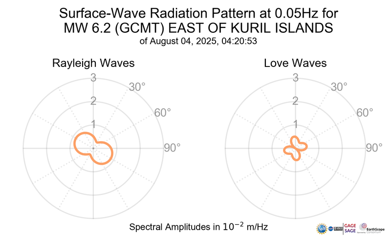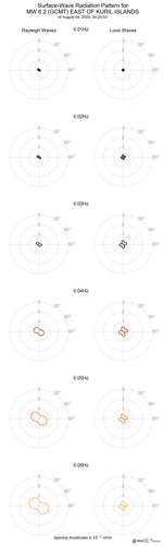 Surface-Wave Radiation Patterns for MW 6.2 EAST OF KURIL ISLANDS |